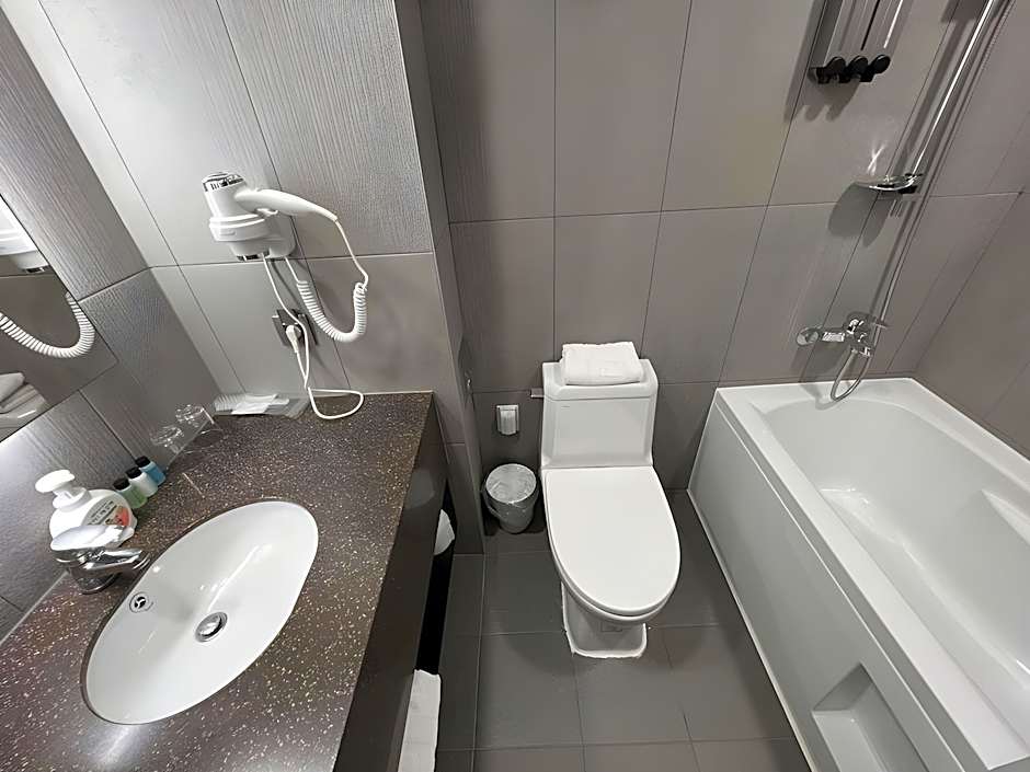 The twin room features air conditioning, a wardrobe, a balcony with city views as well as a private bathroom boasting a bath. The unit has 2 beds.